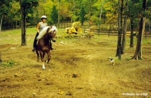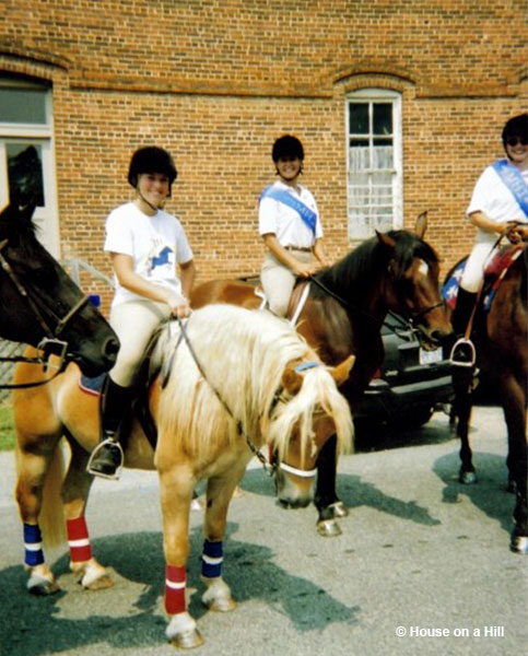 Seeing the success of Marla, we soon bought our second Haflinger, Tanner. He was another Stablemates find, and was wandering around someone’s front yard in the mountains of NC when we picked him up. For a while Tanner was still a major step for me, but gradually I became brave enough to ride him and he quickly became my main love. Once we got past the trying-to-run-me-into-trees phase, it turned out Tanner was a pony of many talents- foxhunting, trick learning, pony jumpers, parades, swimming… we even kicked everyone’s butt in a barrel racing once (short backs = turn on a dime). The only thing he couldn’t tolerate was arena/flat work.
