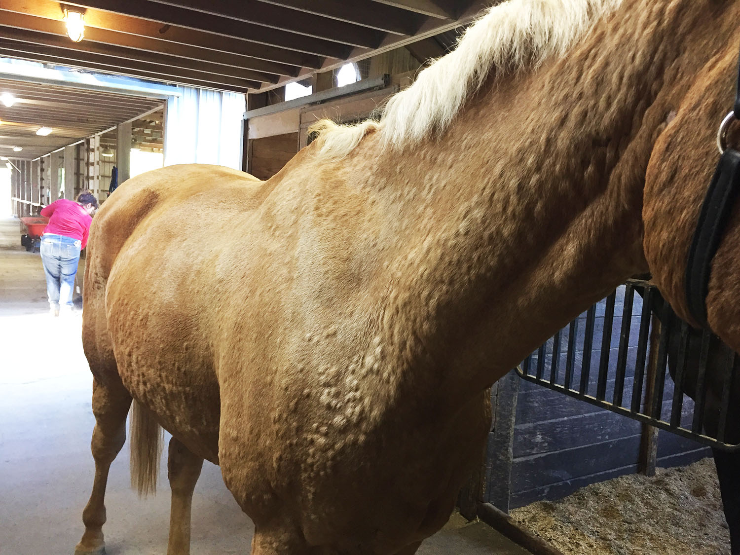 3. My horse goes through phases of being covered in hives, just like this, for years. Unfortunately we have never really gotten to the bottom of them as it’s nearly impossible. Hers are definitely seasonal, popping up in spring and summer only. We have never been able to figure out if it was changes in hay/grass or related to bug bites as they were all nearly impossible to “eliminate”. Best we could do was cover her head to toe in fly gear, keep her hay as consistent as possible, and keep a bottle of dex on hand for flare ups! Good luck.