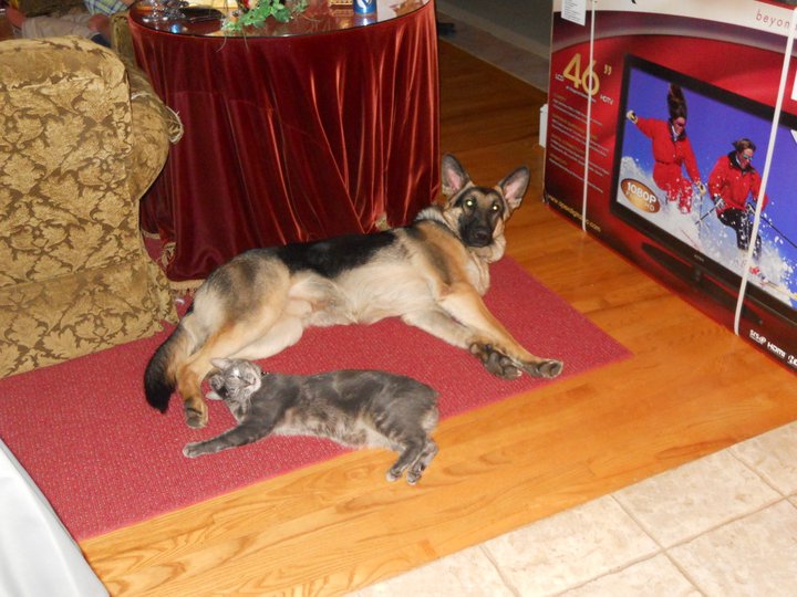 Elliott loved Drake. If Drake was tired, Elliott would bathe him, licking his ears or the top of his head as he laid down. Elliot would snuggle up against him, writhing around on Drake’s paws like the ultra needy creature he was. If Drake was feeling zoomy, Elliott would hop onto the couch and bat him quickly on the nose as he went by. And Drake loved Elliott. The number of times I picked up that cat to find him covered in dog drool cannot be ascertained. The mutual grooming was both endearing and gross. But mostly endearing.