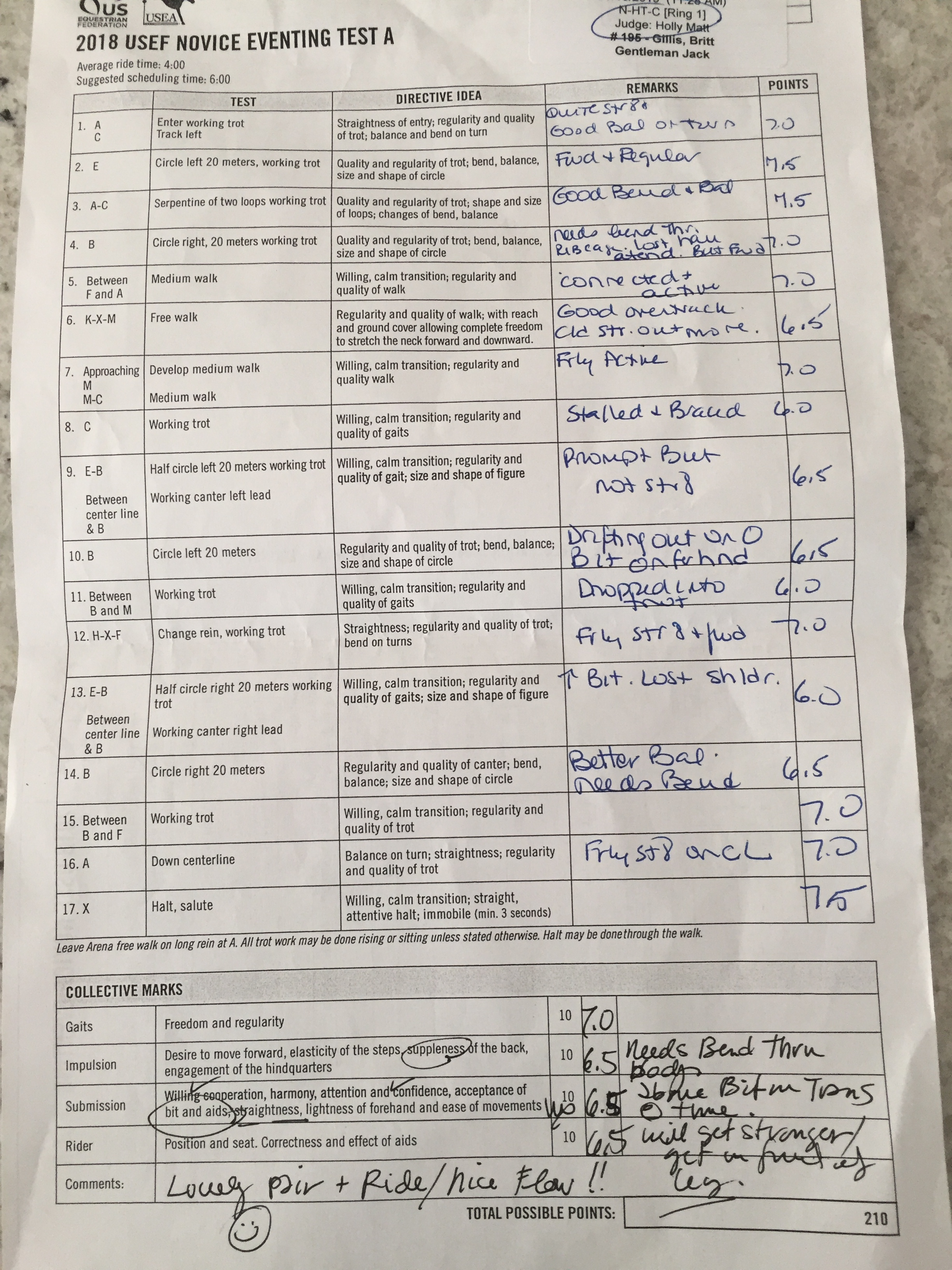 Now Jack is a spooky horse, but typically not a naughty one. And I don’t think he was being naughty per se, but he was also not listening- his brain was gone with the wind. So I spent the last couple minutes before my test on a horse that was bucking (and he never bucks), trotting sideways, bolting, jigging, and pretty much doing everything but relaxing. I did my best to hold it together in the ring, but I’ve included both my comments and the judge’s in the video below: