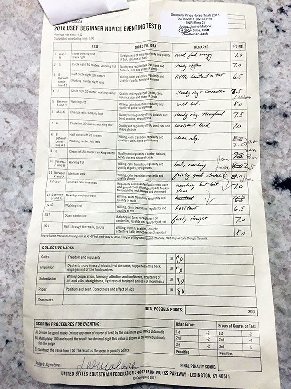 I don’t think it was our best test ever- in general I like him to be a little more relaxed and swinging through his back, but opted for forward in this test instead. So while the judge was fair and marked us down where appropriate, we apparently still made enough of an impression that we sat just behind Andrew McConnon for 2nd place after the dancing was done.